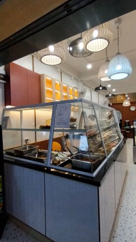 บรรยากาศในร้านดูสะอาด โปร่ง สบายตา ตกแต่งโทนอบอุ่นแบบร่วมสมัย มีตู้ข้าวแกงเรียงอย่างเป็นระเบียบ เห็นหน้าตาอาหารชัดเจน ไฟในร้านให้ความรู้สึกเหมือนครัวบ้าน ๆ ที่ตั้งใจทำอาหารทุกหม้อ ไม่เร่ง ไม่วุ่นวาย เหมาะทั้งแวะซื้อกลับและนั่งกินเบา ๆ ก่อนเดินทาง
